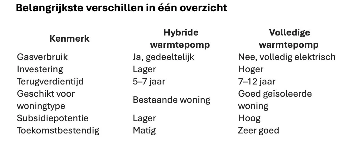 Wat is het verschil tussen een hybride en een volledige warmtepomp?